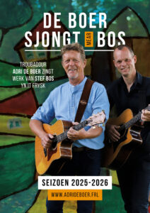 Beide muzikanten hebben keihard gewerkt om een tweede programma in elkaar te zetten, andermaal met in het Fries gezongen juweeltjes van Stef Bos. Zijn werk is met bijna veertig albums enorm omvangrijk; De Boer heeft er opnieuw schitterende stukken uitgepikt en naar zijn eigen Friese hand gezet. Samen met de mooiste nummers uit de eerste ronde is dit spiksplinternieuwe programma ‘De Boer sjongt mear Bos’ meer dan de moeite waard om te boeken voor seizoen 2025-2026.
